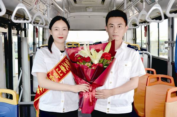 620日,公司泰山百合志愿者為第五分公司游1路駕駛員李寧送上一束百合花,對他拾金不昧、助人為樂的精神表示贊揚。