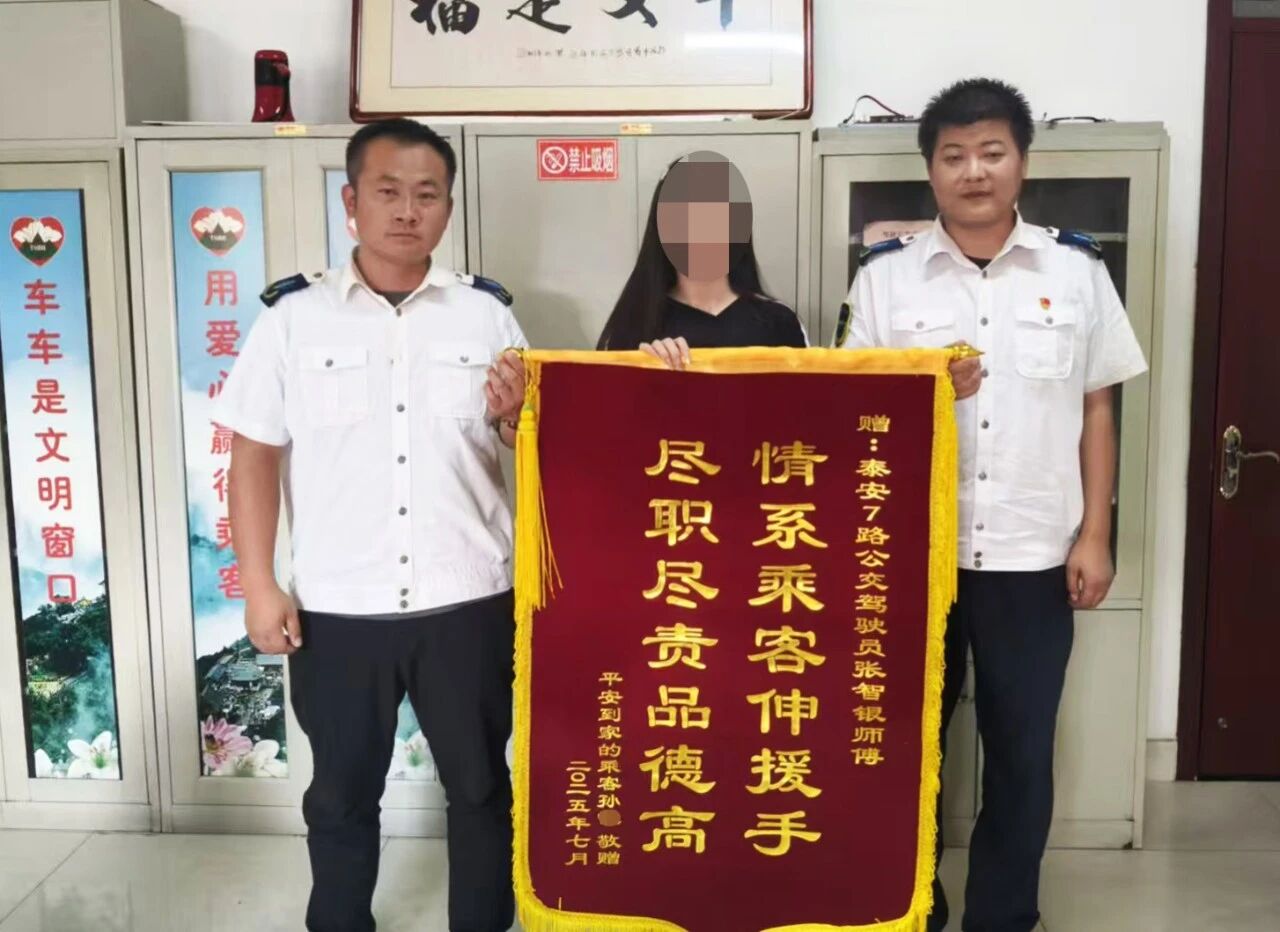 8月1日上午,泰安公交第三分公司辦公室里,一面寫著“情系乘客伸援手 盡職盡責(zé)品德高”的錦旗格外醒目。這是泰城市民孫女士專門送給該分公司7路公交駕駛員張智銀的,她反復(fù)訴說著感謝,這份謝意源于幾天前那個(gè)暴雨傾盆的深夜。